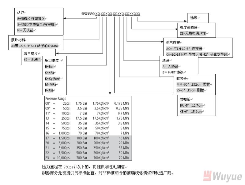輸出,模擬:4-20mA(標準壓力,溫度可選) 輸出,數字:HART 綜合精度 (錯誤)(20-100%滿量程): ±0.15%滿量程(3M和3M以上) ±0.25%滿量程(1.5M和1.5以下) 溫度漂移(77-572℉,25-300℃): 0.001%滿量程/℉,最大(0.001%滿量程/℃,最大) 重復性:±0.1%滿量程 爆破額定壓力:2X滿量程 超壓 額定:1.5X滿量程 量程:750至10,000psi 可調范圍:6:1調節比,向下 負載電阻:250歐姆@18Vdc;500歐姆@23Vdc |