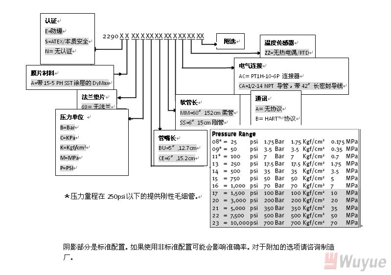 零點調整量程:-40%至+10%;量程<500psi:-80%至+20%